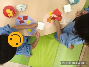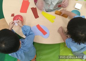 紙をちぎったり、のりを塗ってはりつけたり👆️