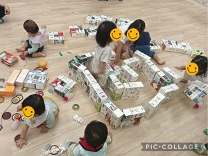 ぽっとん落としや牛乳パックブロックなど遊びがいっぱい☺️