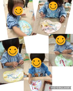 先に終わったお友達は絵の具や色ペン遊び🎨