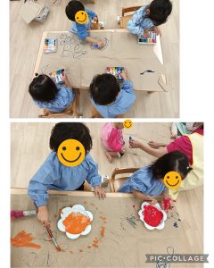 お友達と会話をはずませながら、大きな紙に思いっきり絵を描いていました☆