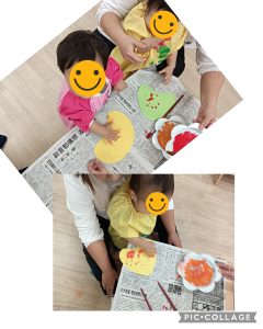 絵の具が手に付くとびっくりした表情😳でしたが、徐々に慣れていました🎨✨