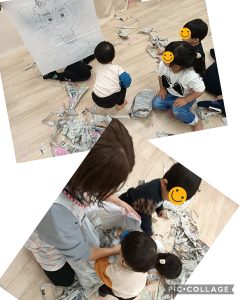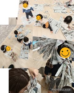 ビリビリと紙の感触を味わいながら、舞い上げたり、何かに見立てたりしていました🎶