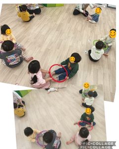 フープをブランコに見立てて、ゆらゆら〜