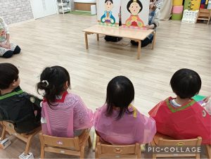 2026.03.03 ひなまつり🎎 今日はひなまつり会がありました🎎 おやつは花あられ🤗 お雛さまやお内裏さまの着物がすてきだね💕 子ども達も着物づくり🤗 とってもすてきな着物を着て、ペープサートをみました🎶 ペープサートにはちょっとした仕掛けが… クスッと笑う子ども達でした☺️