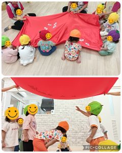 赤とんぼの曲調に合わせてゆっくりと布をゆらゆら〜✨