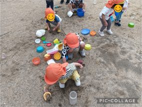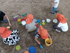 スコップですくってバケツに入れたり、型はめをしたりして、砂の感触を存分に味わいました☺️