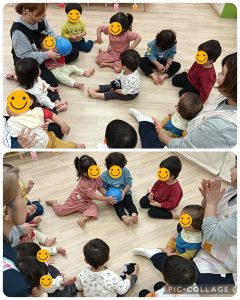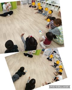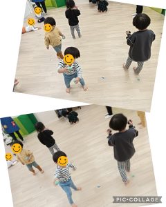 ドコノコキノコの曲がだんだん早くなると、子ども達のマラカスも曲に合わせて聞こえてきました🎶