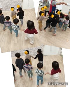 「さんぽ」の曲に合わせて手つなぎで歩きました!
