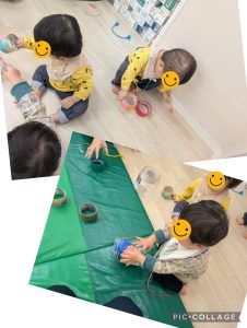 0歳児は手作りおもちゃに興味津々😳
