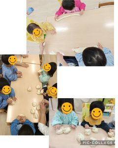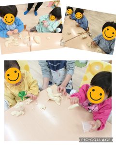 小さくちぎって遊んだり、思い思いにいろんな形を作ったりして、じっくり遊びこむ子どもたちでした🤗