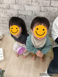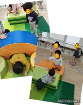 ジャンプでフープを通り過ぎるお友達を見て、チャレンジしようとする子どももいましたよ!
