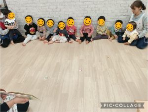 「かーべ、かーべ、ぺったんこ」の歌がはじまると並びだす子どもたち🎶