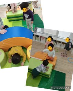 高いところからジャンプしたり…ちょっと怖いと感じた友だちは後ろ向きになって手をついて降りようとしたり…自分たちで考えて工夫していました😊