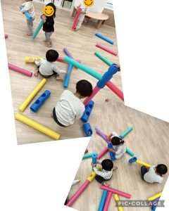 今日はプールスティックで遊びました!