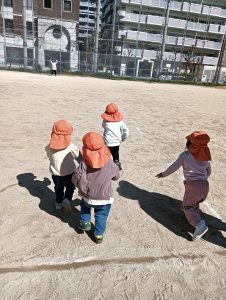 次はお友達と手をつないで歩きました!