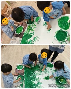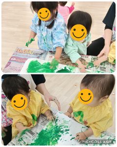 夢中になって絵の具の感触を楽しむ子もいれば、白い場所探して描こうとする子もいましたよ🎨✨