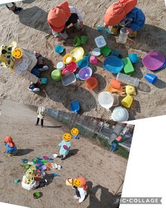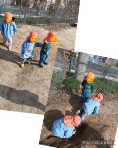 砂の感触を味わいながら、スコップですくったり、出したりして楽しんでいましたよ!