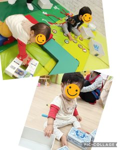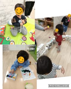 ままごとやお絵かき、ブロックそれぞれすきなコーナーに分かれて遊ぶ子どもたち😊