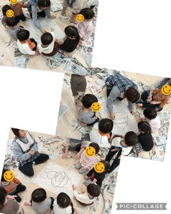 子ども達と当てっこクイズをしながらサンタクロースができました🎅✨