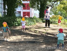 木陰でしゃぼん玉🫧や砂遊びをしました。