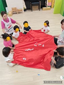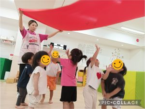 赤とんぼの歌に合わせて布をゆらゆら〜