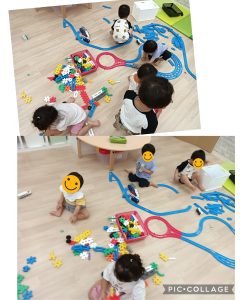 大きくレールをつなげたり、ニューブロックで線路を作ったりしていました🚃✨️