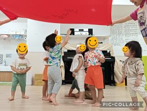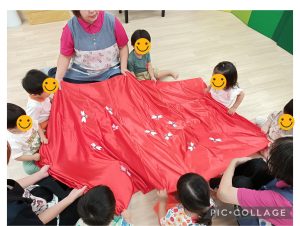 「赤とんぼ」の曲に合わせてゆっくり布をゆらゆら〜